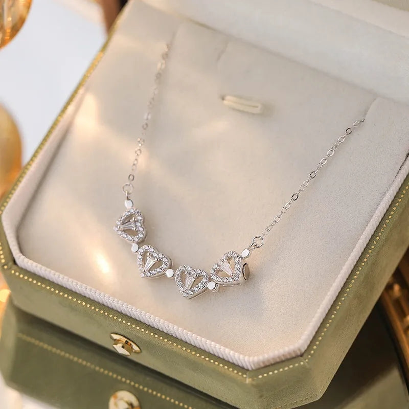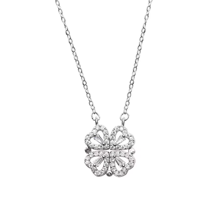 Açılır kalp yonca kolye, gümüş ve altın kaplama tasarımıyla şık görünmenizi sağlayacak, ister açın dört kalp şeklinde kullanın ister kapatın yonca kolye modeli olarak kullanın her türlü kıyafet için mükemmel bir tamamlayıcıdır.