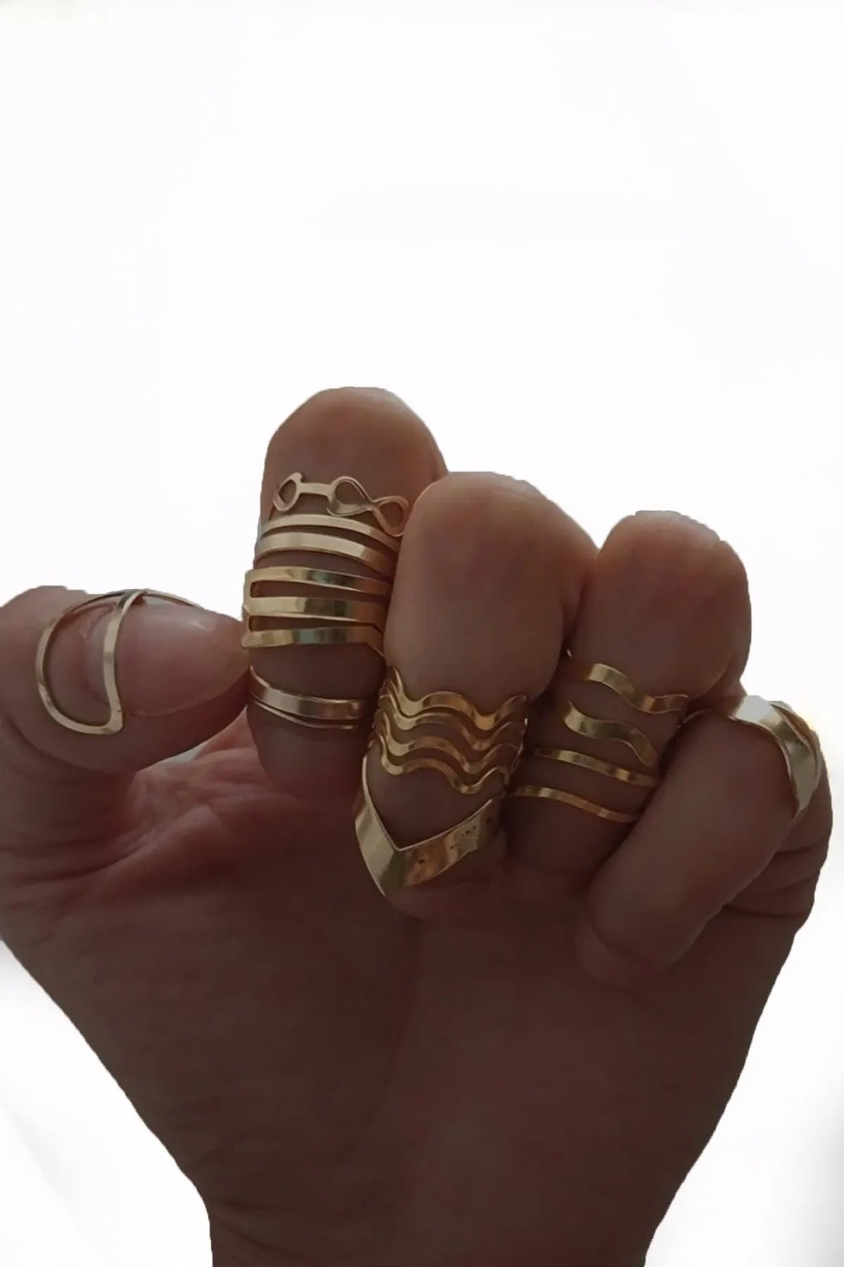 Farklı formlarda ve desenlerde tasarlanmış 10 adet yüzük, ister tek tek ister birlikte kullanılarak tamamen size özel bir görünüm yaratır. Yüzüklerin kombinlenebilir yapısı sayesinde her gün yeni bir stil mümkün!