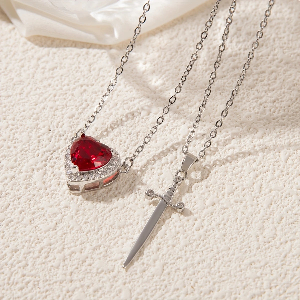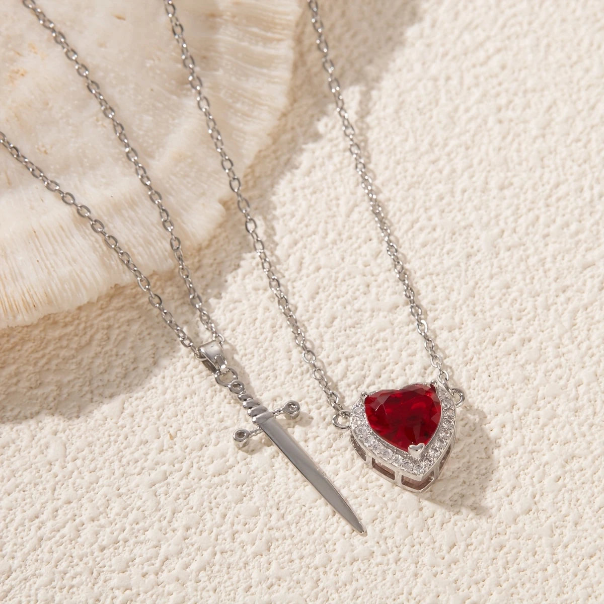 Kalp ve Kılıç Çift Kolyesi, iki önemli sembolü bir araya getirir: