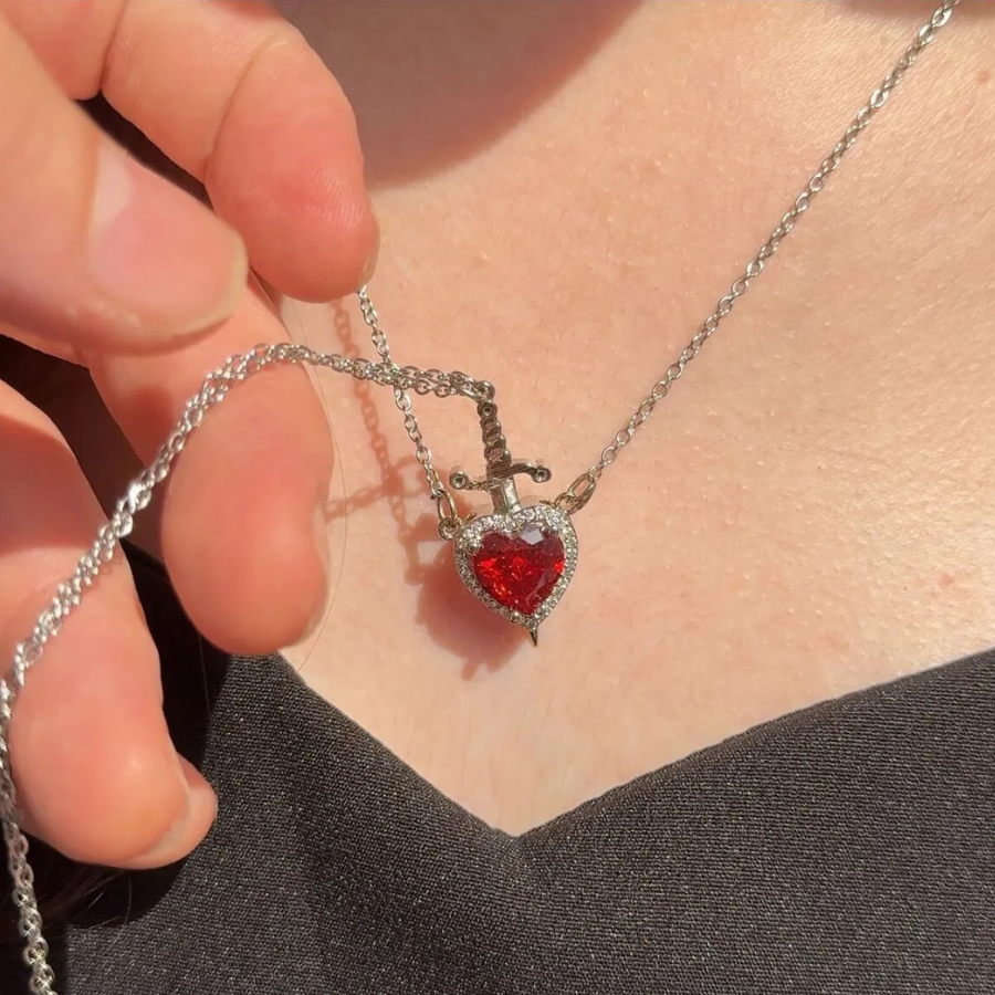 Aşkın yumuşaklığı ile gücün keskinliği bu tasarımda buluşuyor. Kalp ve kılıç, birlikte takıldığında hayatın iki kutbunu aynı anda taşır: sevmek ve korumak.