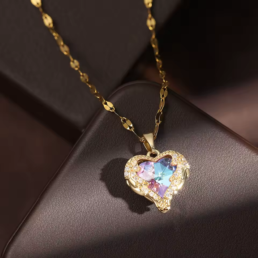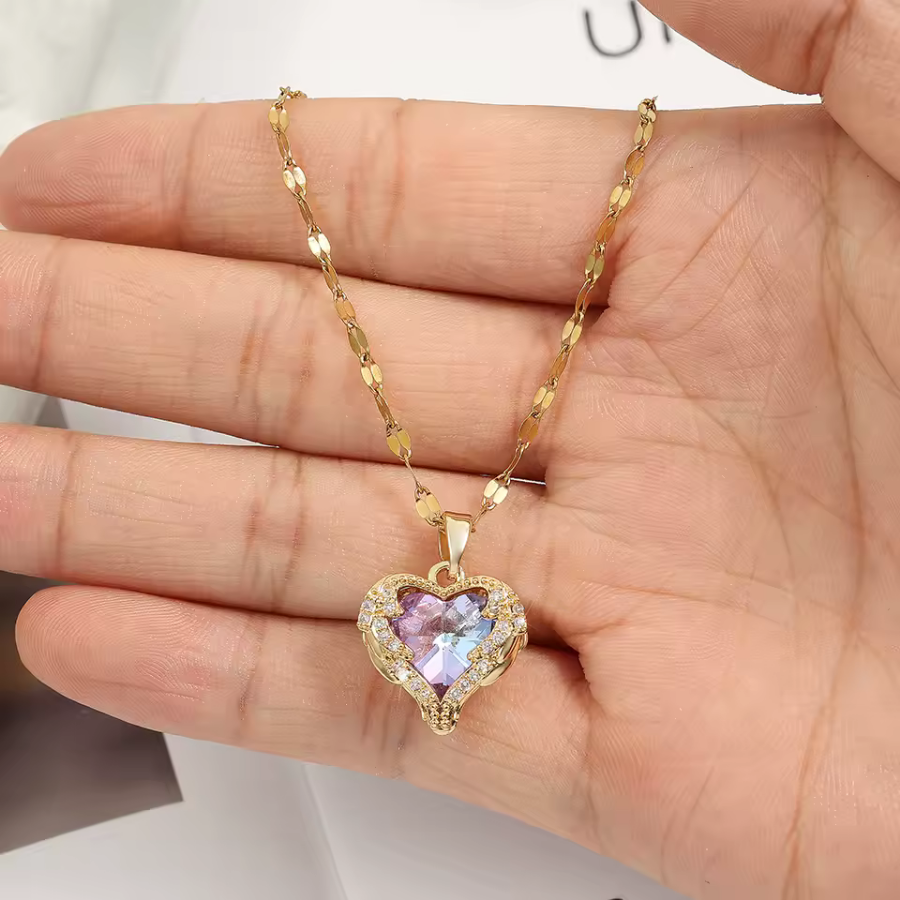 Okyanus kalbi kolye, yüksek kaliteli paslanmaz çelik kullanılarak özenle tasarlanmıştır. Ana odak noktası, kalp tasarımı ve melek kanatları içinde ki parlak zirkon taşıdır, bu taş okyanusun berrak sularını simgeler.