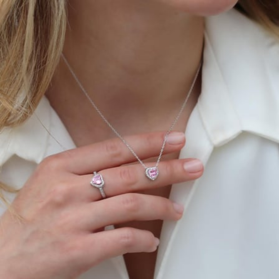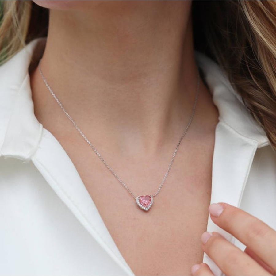 Pembe taşlı kalp kolye modelimiz zirkon taşları ile süslenmiş kalp tasarımıyla çok sevilen kolye modelidir. Kararmaz ve paslanmaz çelik materyal kullanılarak hazırlanmıştır. Tüm cilt tipleri ile uyumlu olduğundan kaşıntı ve alerji yapmaz. Sevdikleriniz için harika bir hediye seçeneğidir.